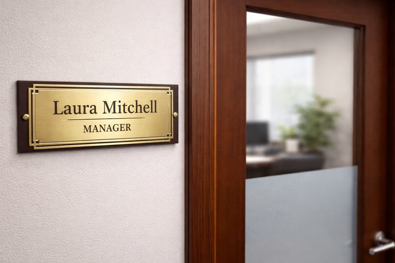 We provide custom laser engraving for business signage, office name plates, door signs, and branded displays. Using precision laser engraving on wood, acrylic, and metal, we create durable, professional signage that enhances brand visibility and delivers a clean, polished look for offices and commercial spaces.