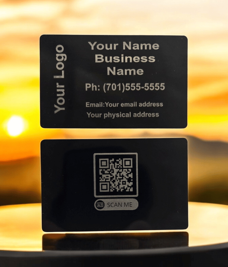 Metal business cards stand out, feel premium, and last indefinitely. They’re often shown, not handed out, allowing potential clients to scan a QR code to instantly download the seller’s contact information.